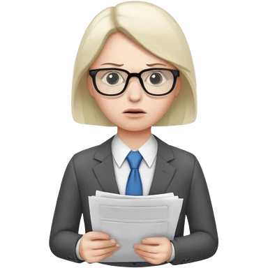 Frowns with Glasses, Office Boss: Business outfit, holding papers, frowning behind glasses, serious look emoji
