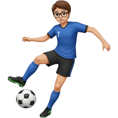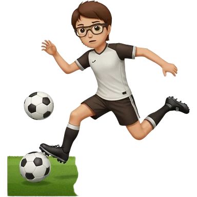Fat sad guy with brown hair and glasses kicking a ball emoji