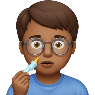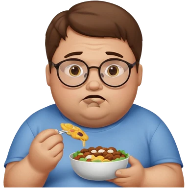 Fat sad guy with brown hair and glasses sucking on binky emoji