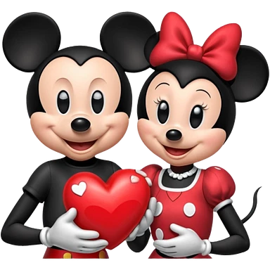 Mickey Mouse and Minnie Mouse with a heart emoji