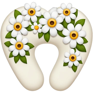 Garota de cabelos longos castanhos, sardas sutil, bochechas redondinhas e lábios levemente rosados, roupas brancas e rosas emoji