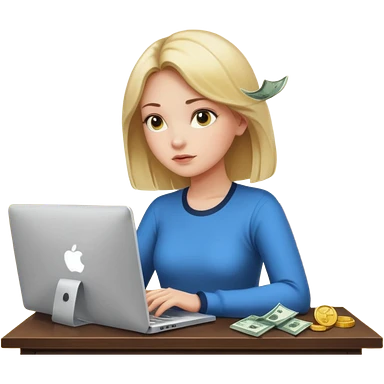 Girl who is trading options on her computer with $ signs in air emoji