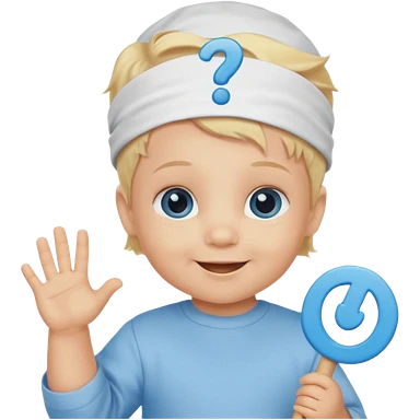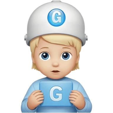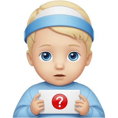 Caucasian blond hair blue eyed infant baby with a genius sign over it’s head emoji