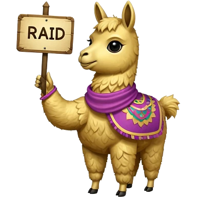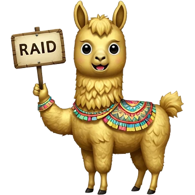 A small golden llama silhouette with a white sign that says RAID over it emoji
