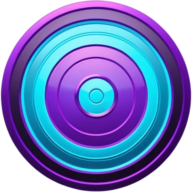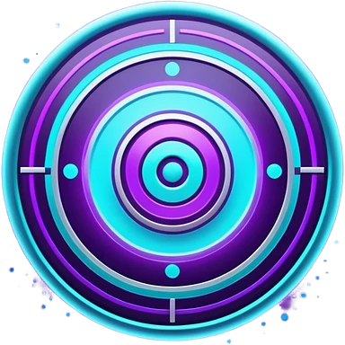 Futuristic glowing bullseye target emoji, neon purple and cyan holographic glow, dark background, digital tech style, abstract sparkles, no face. emoji