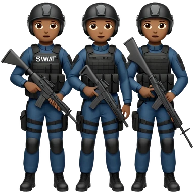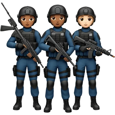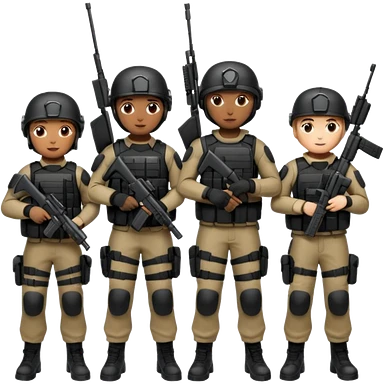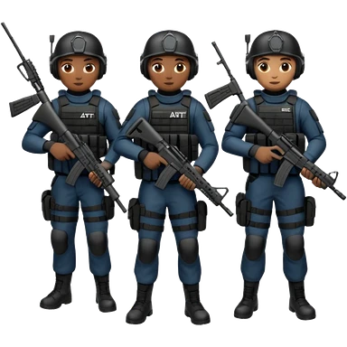 SWAT member with white skin and brown beard and gun emoji | AI Emoji Generator