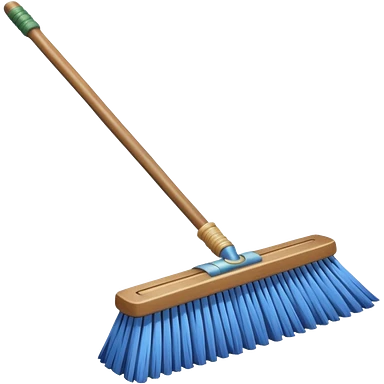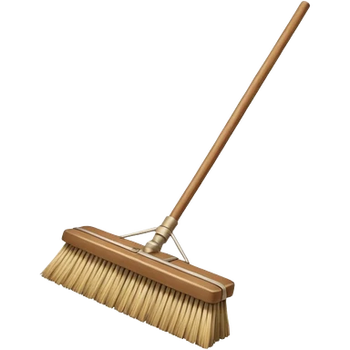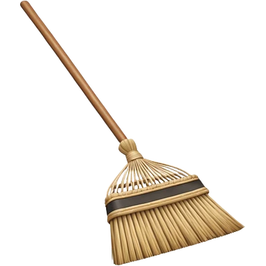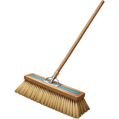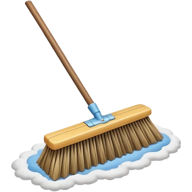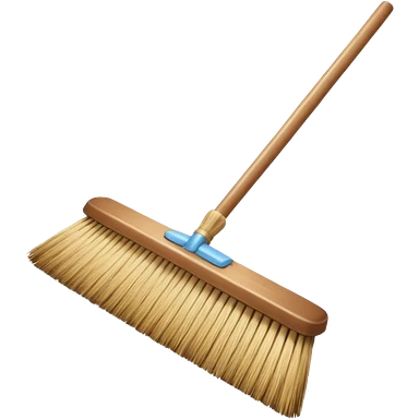 traditional broom with wooden handle on a dusty carpet, straw bristles sweeping visible dust clouds, old-fashioned cleaning tool, vintage household style, 3D cartoon, mobile game icon style, centered composition, no people, no animals, no text, no watermark emoji
