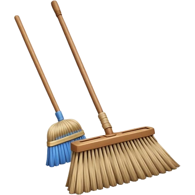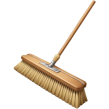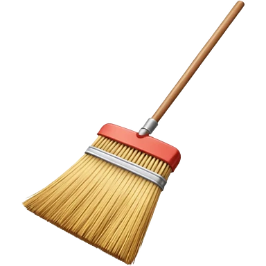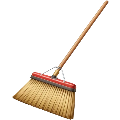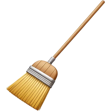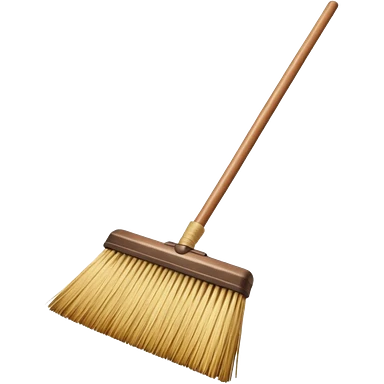 traditional broom with wooden handle cleaning dust from a carpet, straw bristles sweeping visible dust particles, vintage household cleaning tool, simple retro style, 3D cartoon, mobile game icon style, centered composition, clean background, no people, no animals, no text, no watermark emoji