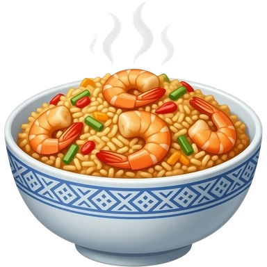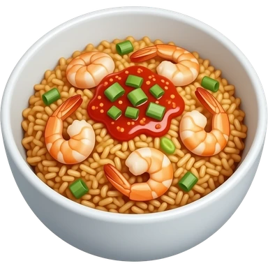 realistic -- fried rice with shrimp and sweet chili sauce in bowl emoji