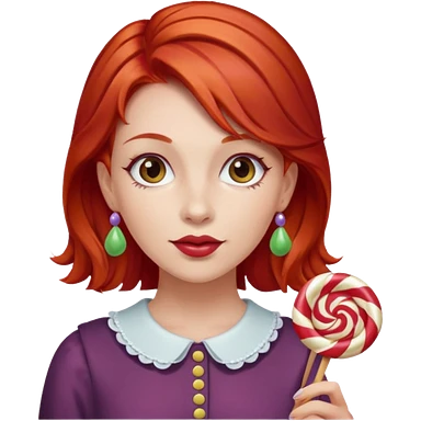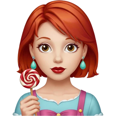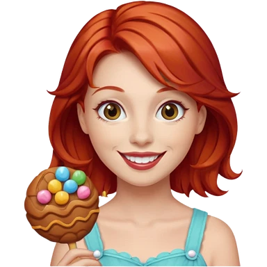red hair woman with sweet treat accessories, not holding a candy emoji