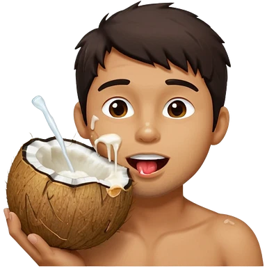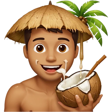 Handsome man licking a dripping coconut emoji