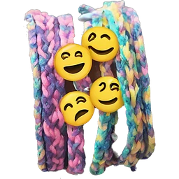Make a hand with a wrist that has a bea braclet around the wrist the beads are pastel yellow on the sides and the middle has grey beads that are letters that say SWIFTIE only one braclet emoji