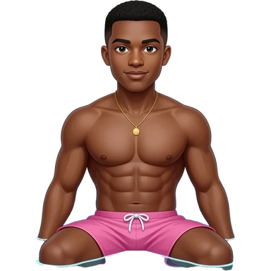 make a black skinned 20 year old man with a low taper fade sitting in a pool with giant abs in pink swim trunks emoji