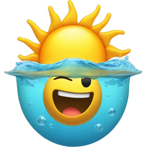 Create an emoji of a man swimming in a lake, floating on a watermelon, floaty, with a rainbow background with sunshine emoji