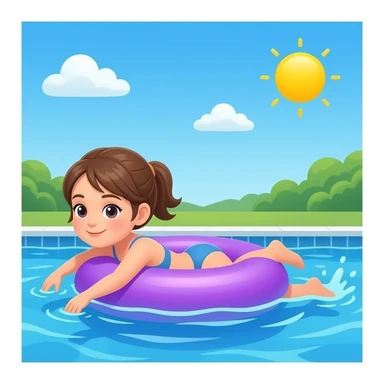 swimming pool surface with multiple inflatable pool floats floating on water, extra colorful float rings scattered across the pool, glossy water reflections, summer vibe, 3D cartoon style, mobile game icon style, clean composition, no people, no text, no watermark emoji
