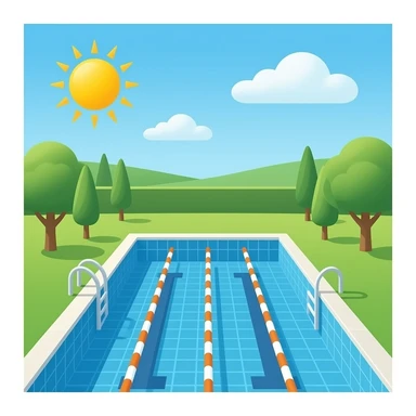 A swimming pool symbol with waves, representing broad sports variety (swimming, gym, classes). Rounded shapes, flat bright colors. emoji