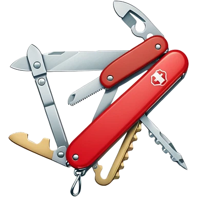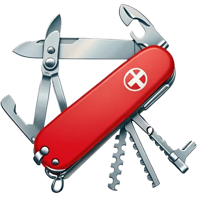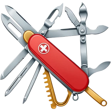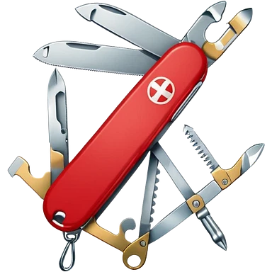 swiss army knife emoji where each tool has an icon: calculator for bookkeeping, credit card for payments, headset for customer service, sales graph for sales, theme of outgoing calls to customers for e-conomic, friendly and professional style emoji