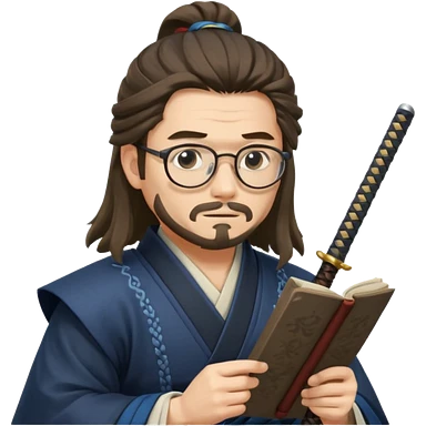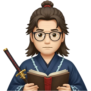 Long Haired Samurai with Glasses, Calm swordsman reading scroll with glasses emoji