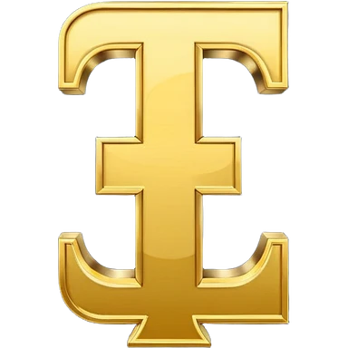 Symbole de currency en or en forme de lettre F précise, seul, 3D, brillant, style emoji simple et lisible sur fond uni. pas une autre lettre