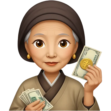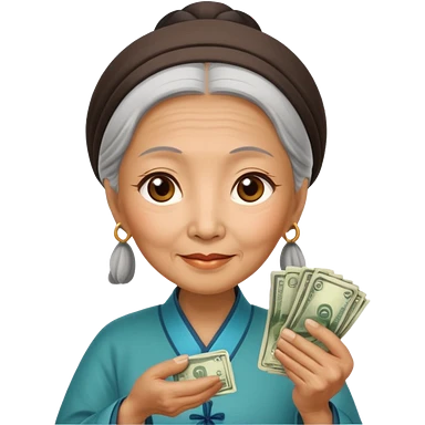 old chinese woman with Compassion - sympathetic concern for the sufferings of others, offering money emoji