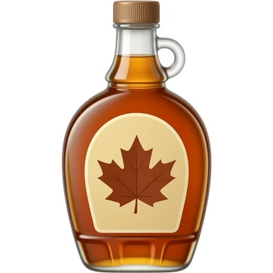 maple syrup bottle, iconic glass jug, amber syrup, rounded with handle, gold or dark screw cap, glossy, subtle reflections, 3D clean style, transparent background, optimized for emoji size emoji