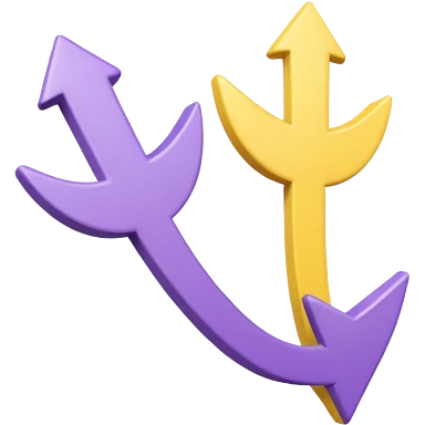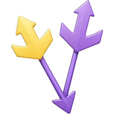 Two rounded arrows, one pointing up (yellow), one down (purple), soft 3D effect, pastel colors, Pixar style, hand-drawn texture, transparent background emoji