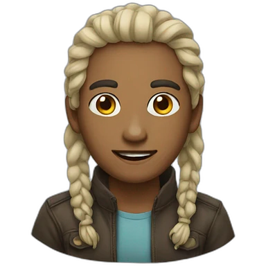 Um homem com cabelo grande cacheado, penteado para trás da cor preta, barba conectada no cabelo, a barba é preta, pele branca, olhos negros, usando roupas num estilo casual, usando um boné cinza, como se tiesse stalkenado alguém. emoji