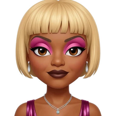 T-Boz from TLC with brown eyes, short blonde hair, fuchsia metallic crop top, silver necklace emoji