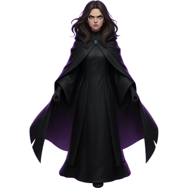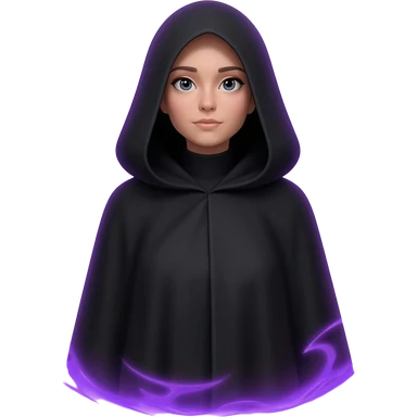 Black cloak with purple aura and boundaries female full body open hair intense emoji