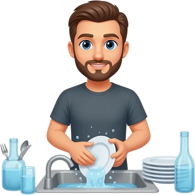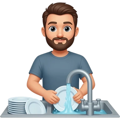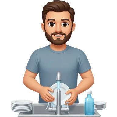 lavar los platos sin barba y con remera. sacar la barba emoji