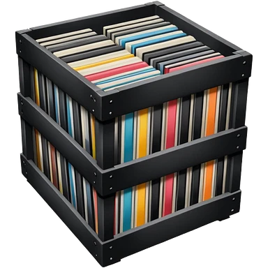 Generate a high-quality 3D cartoon-style emoji of a red LP record inside a black LP box, realistic shading, smooth gradient colors, rounded and cute appearance, simple white background, high-resolution. emoji