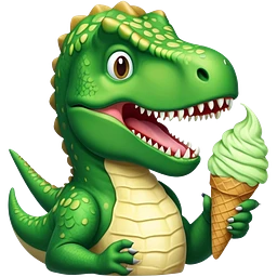 T-rex surfing while eating an ice cream emoji | AI Emoji Generator
