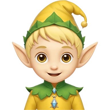 Tiny elf baby with pointy ears and hat, yellow outfit emoji