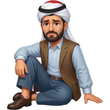 kurdish man and clothes and show leg and head and sad not cry emoji