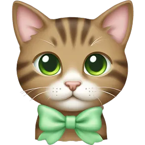 kawaii brown tabby kitten with green eyes and pastel green bow on top of head emoji