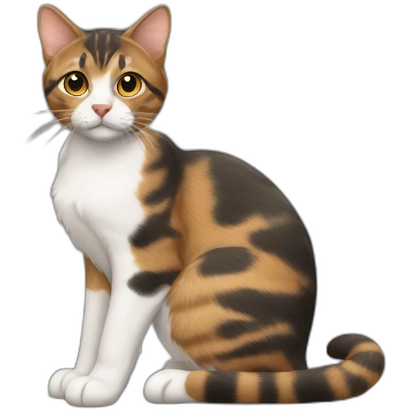 cinematic-[calico tabby cat]-realistic-full-body-sitting-emoji,-tail-curled-playfully-around-its-paws,-head-tilted-dramatically,-scruffy-[calico]-fur,-simplified-yet-realistic-adorable-features,-highly-detailed,-glowing-with-an-almost-sarcastic-glow emoji