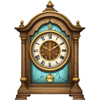 Icon for Antiques Collecting: a vintage clock, intricately carved furniture, famous paintings, antique swords, and rifles. The items are displayed on a wooden table or shelf. The icon should evoke the rich history and craftsmanship of antique collecting. Transparent background. emoji