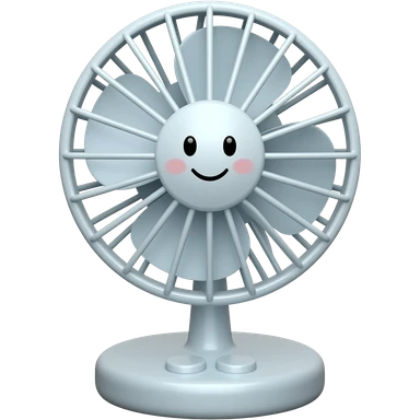 A cute table fan emoji, small electric desk fan with round blades, smiling face, soft pastel colors, minimal design, clean background, emoji style emoji