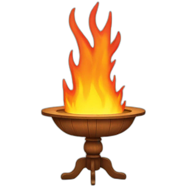 a man sits sadly at a table, a house is burning behind him, apple style emoji, with dramatic fire and smoke emoji