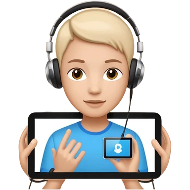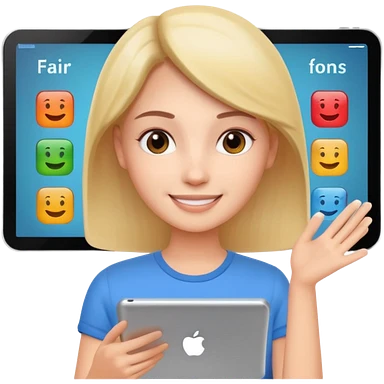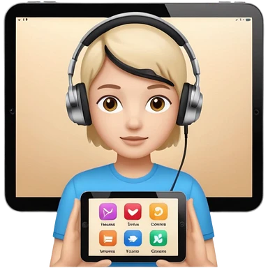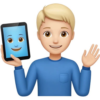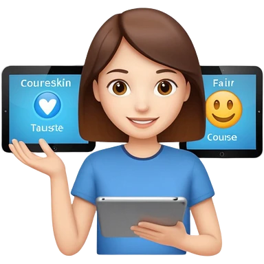 tablet with rounded corners, on the screen an interface and on the screen a person presenting onlince course emoji