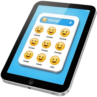 tablet with rounded corners, on the screen an interface of online course emoji