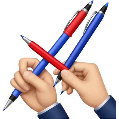 Donald trump wearing a suit with 6 pens in his suit pocket, and a pen in both hands emoji