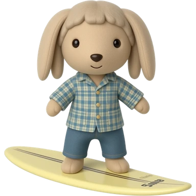 women surfing on pink cute board with flowers and she has wavy brown hair emoji