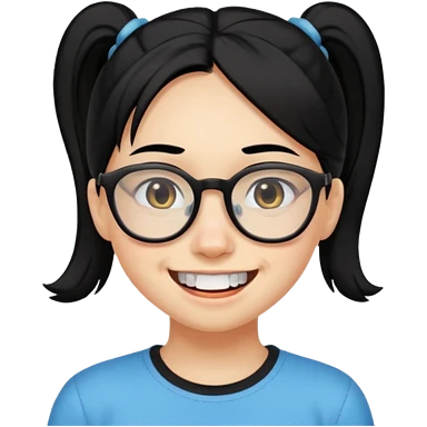 여자아이 하나로포니테일 검은머리 덧니+안경 피부 안좋음 emoji