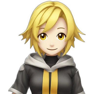 Kagamine rin, she has a bow a sigh headphones+mic and bowtie with Teal eyes emoji