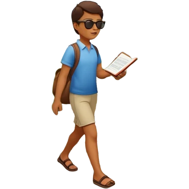 someone who's walking on a path and the person is reading a panel to learn about a flower emoji