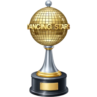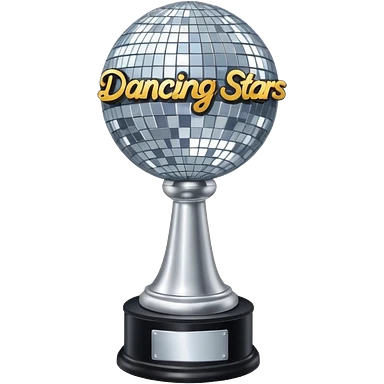 Tall Competition trophy with a silver disco ball on top that says “Dancing With The Stars” emoji