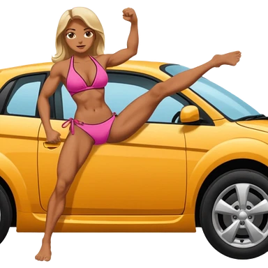 Girl in a bikini crushing a car under her foot emoji