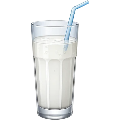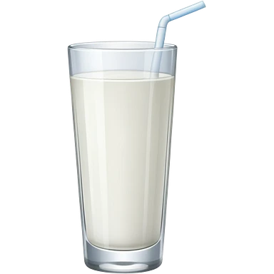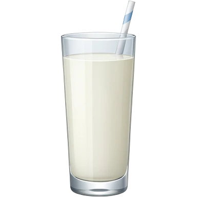 A 3D cartoon tall glass of vanilla milkshake with a straw, smooth creamy texture, light froth on top, subtle reflections, soft warm light, Memoji-style. emoji
