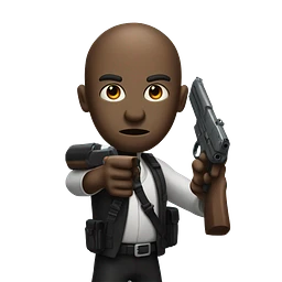 Tall Martian hitman pointing gun high at the camera emoji | AI Emoji Generator